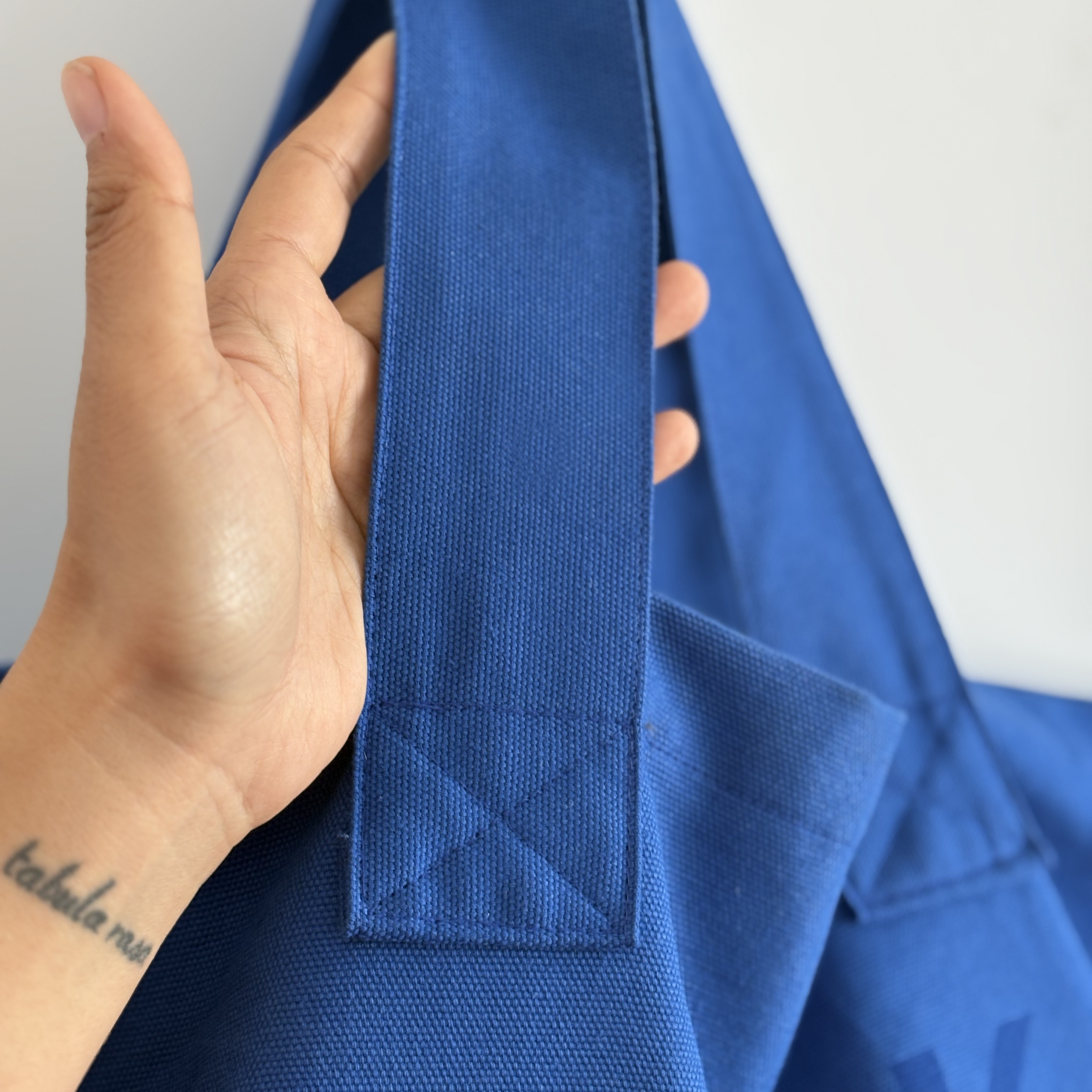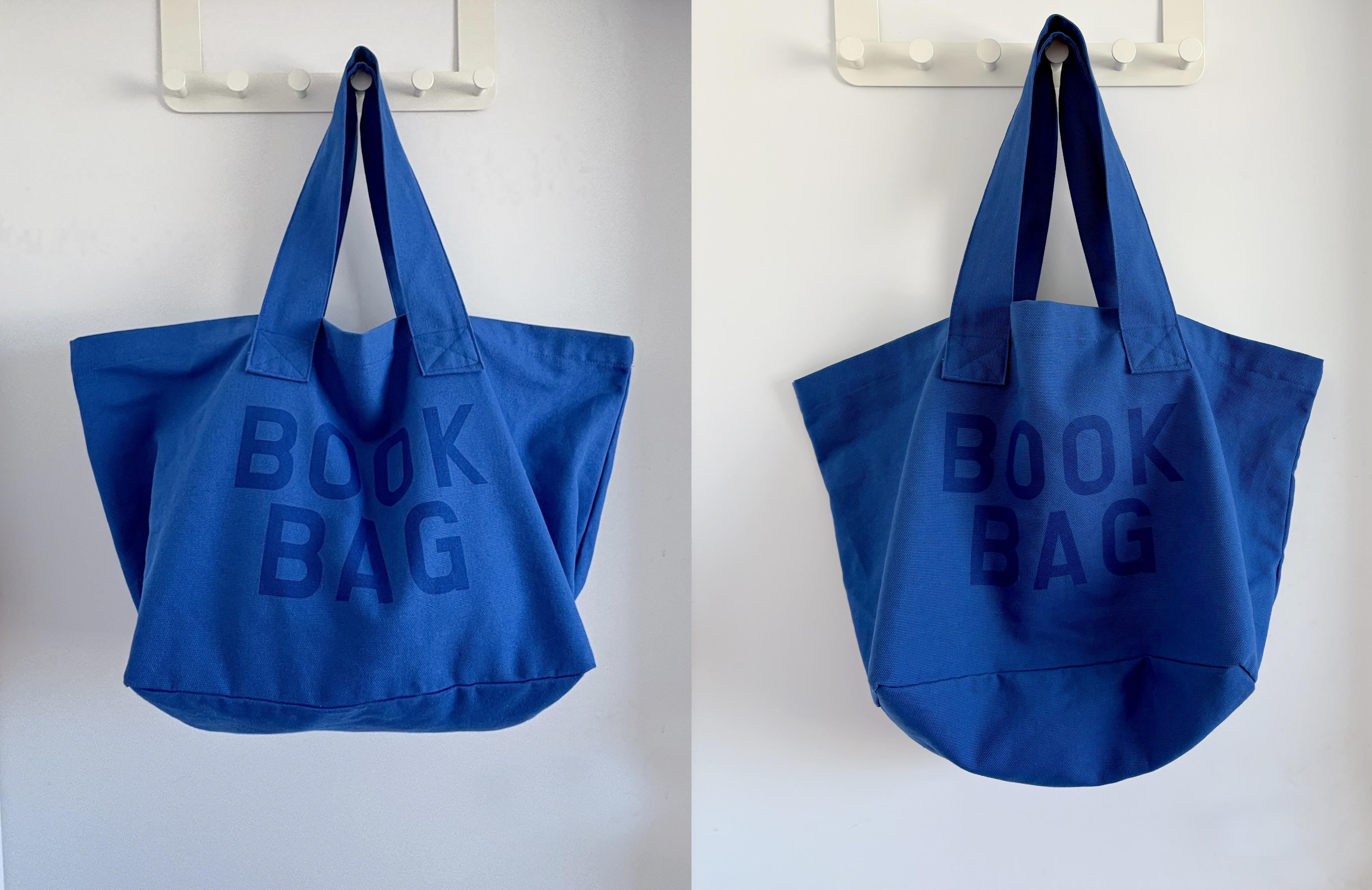 무거운 하드커버 책을 아무리 많이 넣어도 거뜬하다는 의미로 디자인한 북백 블루 컬러