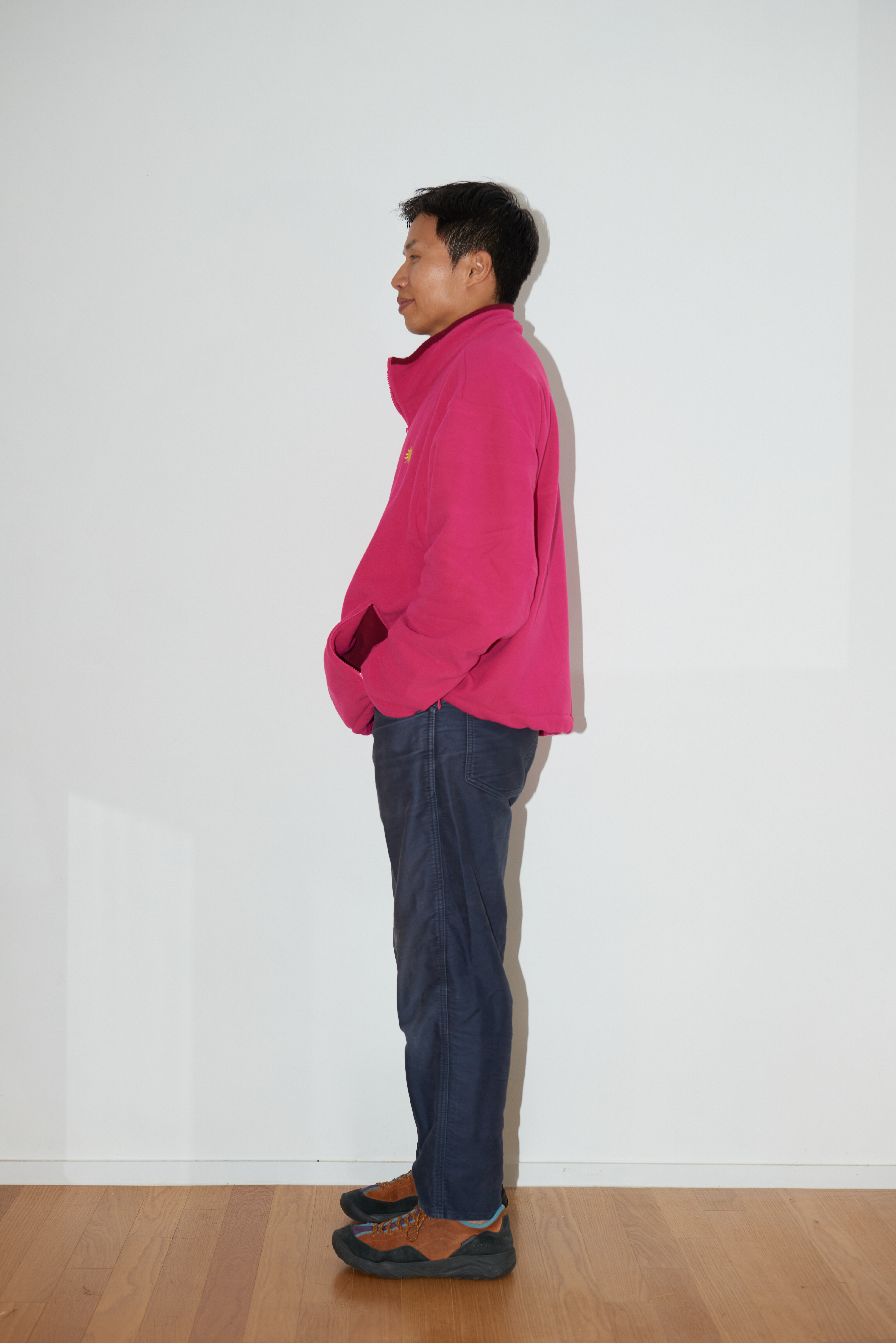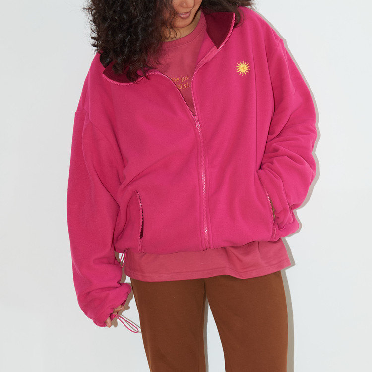 딥 와인 색의 배색으로 후리스가 부담스럽지 않고,