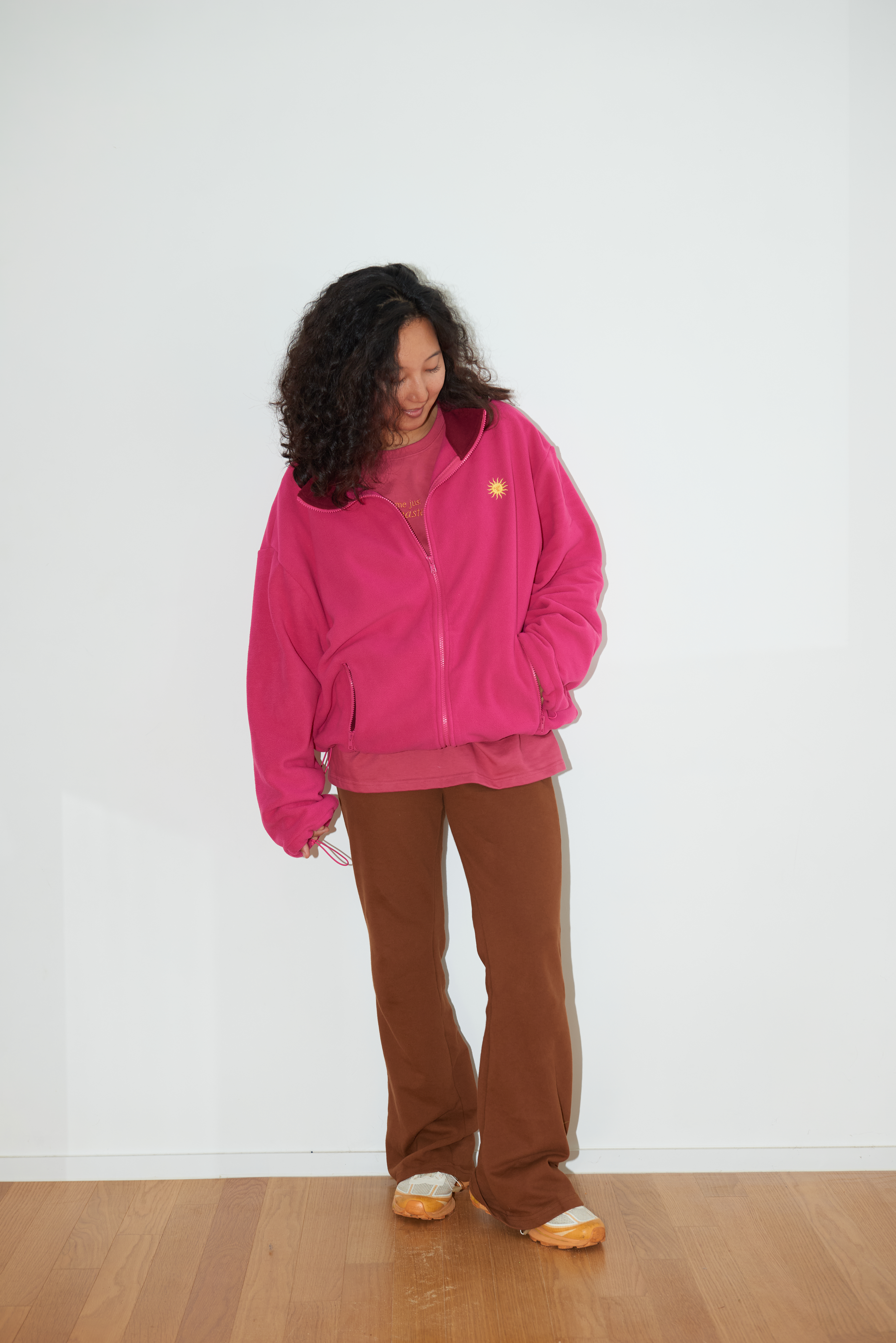 오버핏인 이번 후리스는 스트링을 조이지 않고 입으면